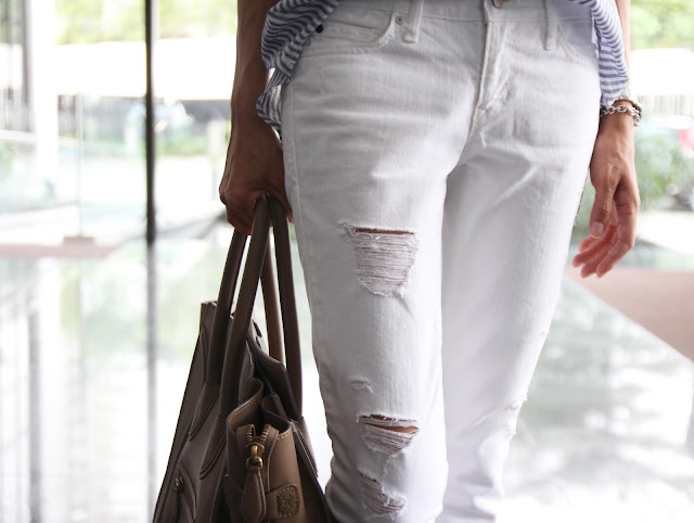 Collection Thrift Pick – My New Torn Jeans by Yen Saturday, August 3, 2013 Conversation between bf and I: Me: Look! I bought a new pair of jeans from Gap! Cool huh? Bf: What? You actually paid for damage goods? Me: ……Seriously? -__- Top – J. Crew (new) Jeans – Gap (similar here) Flats – Kenneth Cole (similar here) Bag – Celine (here & here too) Sunglasses – Ray Ban (here too) Celine, Gap 18 Comments 0 Share on: