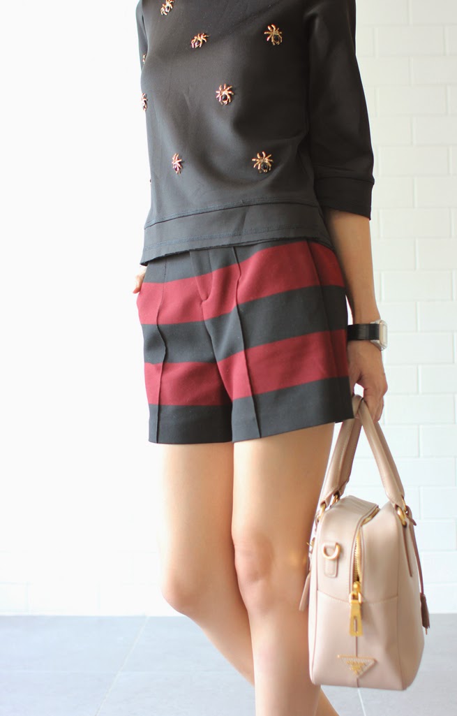 | Top – Mood & Closet (similar here) Shorts – Zara (similar here) Bag – Prada Ballet Flats – Salvatore Ferragamo |