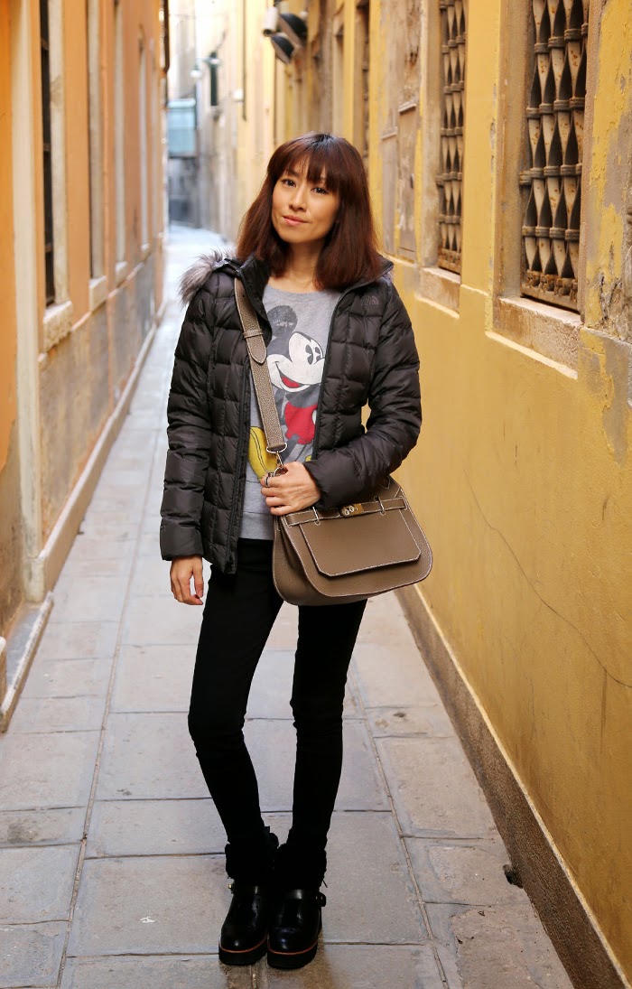 Sometimes what looks good might not be practical but what’s practical might not look as good. Just like this down jacket by The North Face. I know…it doesn’t look as attractive in the picture. Down jackets are meant to keep us warm and not look as fabulous anyway. Although, I tried layering it with this fun Mickey sweater which I bought from Disneyland and hope that my entire look isn’t too dull.