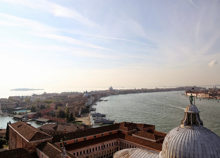 Panoramic pictures of Venice from the bell tower and on the boat.
