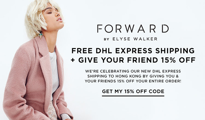 FORWARD by Elyse Walker is celebrating the launch of DHL express shipping to Hong Kong by giving you and your friends 15% off your entire order! To receive the coupon, share the sale by entering your friend’s email. Promotion date starts January 18th – 31st, 2016 (7pm HK Time).